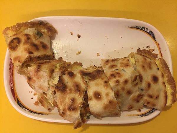 蛋餅口感很獨特,相當酥脆,說是蛋餅,倒更像印度烤餅或中式烤餅,餅皮本身跟內餡份量都很足夠。