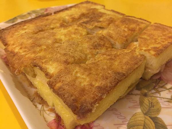 法式土司跟我想得不太一樣,應該是兩面都沾了奶油跟蛋液下去煎,有一點油,